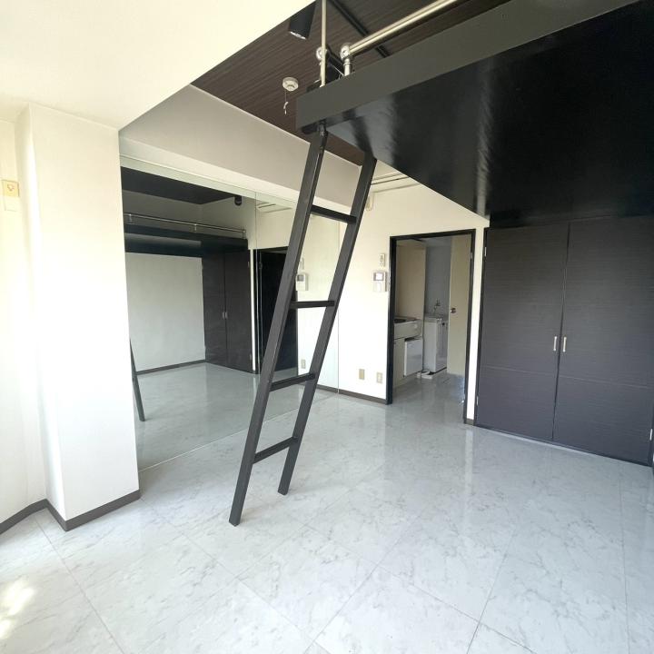 【 マンション 】白、黒を基調としたお洒落なデザイナーズハウス。6帖+ロフト付き。家電付き。初期費用はかなり安いです。