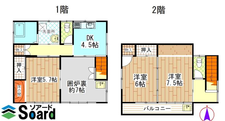 【 一戸建て 】囲炉裏のある貴重な戸建です。自然に囲まれた生活を送りませんか楽器演奏も可能です!ご相談ください!追い炊き機能、独立洗面台と水回り充実しています。※照明器具残置物