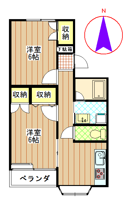 【 アパート 】全居室洋室の2DK!駐車場2台可です。キッチンはシステムキッチンで空間は広々としています。敷地内にごみ出し場があるので、忙しい日も安心です。