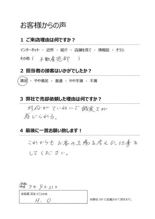 「これからもお客様の立場を考えた仕事をしてください。」のお言葉を真摯に受け止め、精進して参りますので、