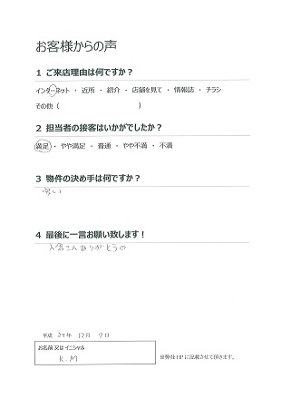 一度のご内覧で即決され喜んで頂き私も嬉しく思います。効率の良いお住まい探しのお手伝いができ良かったです。今後生活がより良くになるよう誠心誠意サポートをさせて頂きます