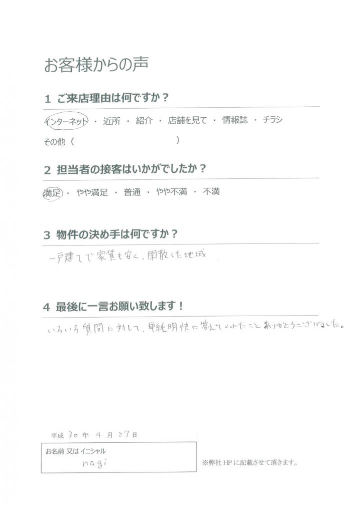 この度はソアードをご利用いただき誠にありがとうございました。またお引渡し後アンケートにもご協力頂き重ねて御礼申し上げます。