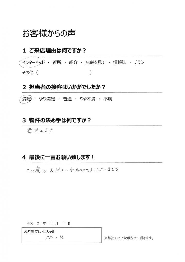 無事に入居出来て安心しております。
